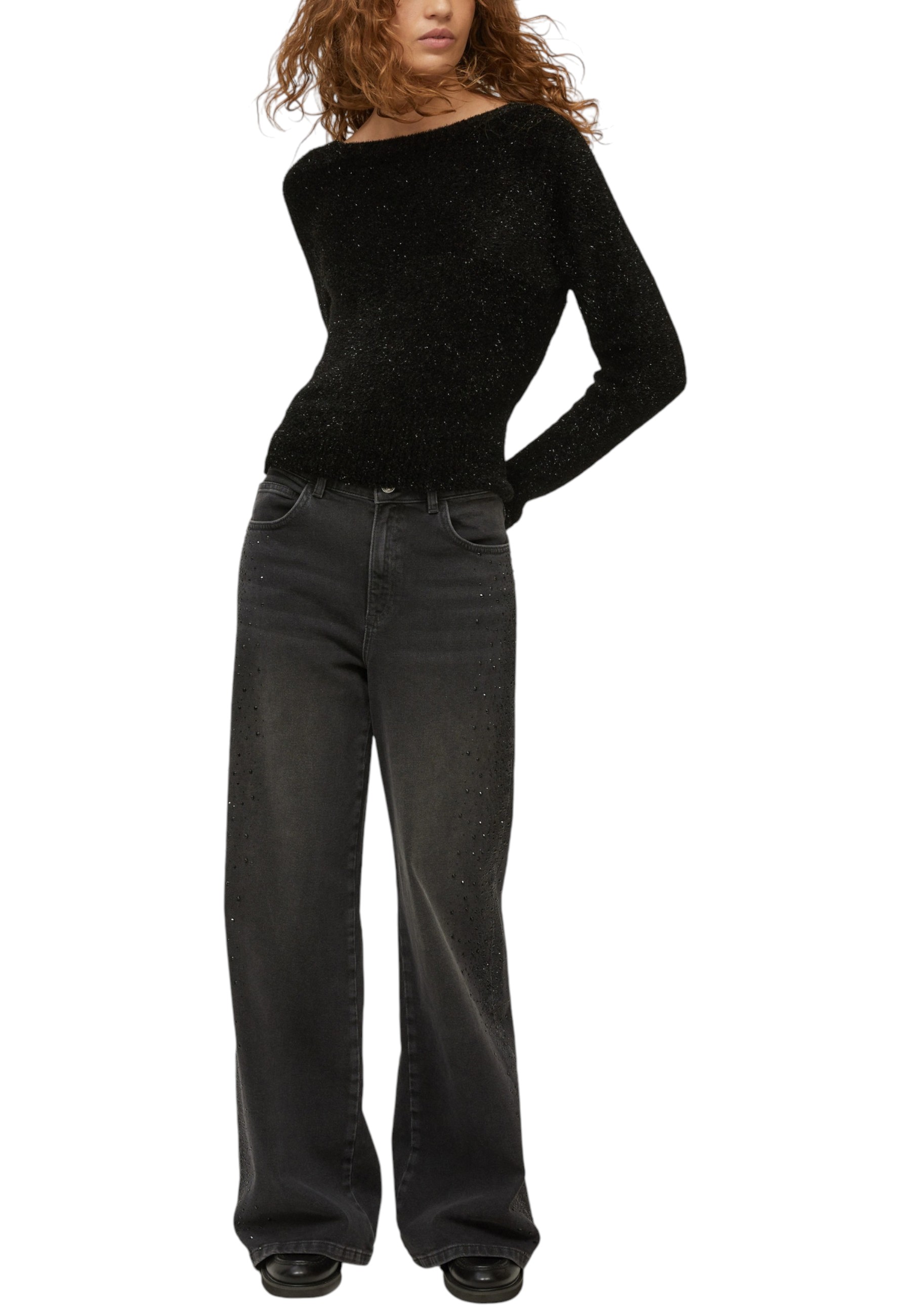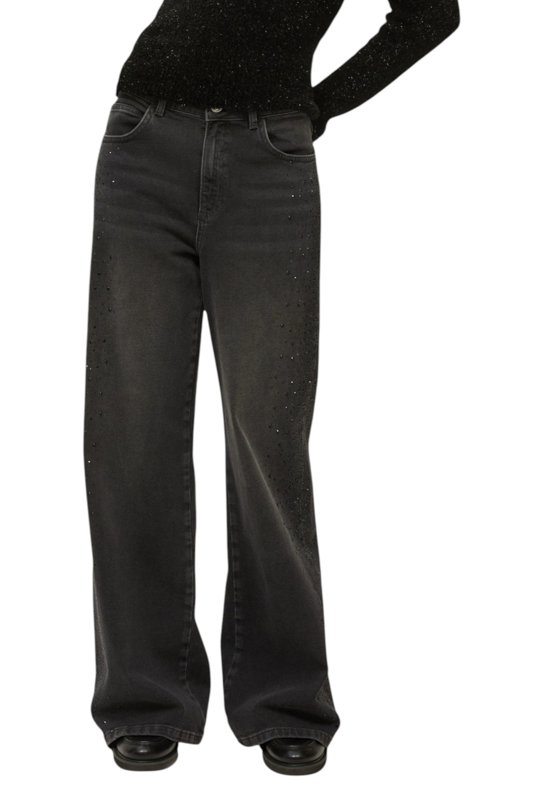 Con un fit rilassato e una frizzante pioggia di strass in nero su nero, questi jeans saranno perfetti per i party informali e per aggiungere un tocco glam agli stili quotidiani.