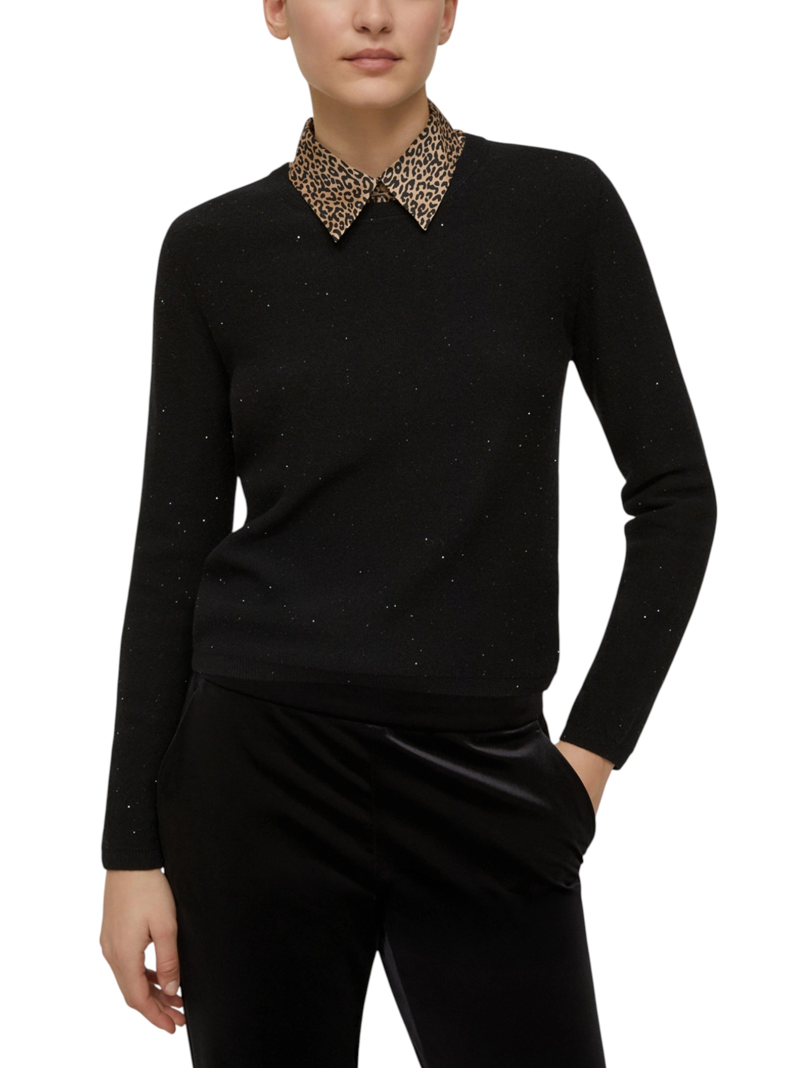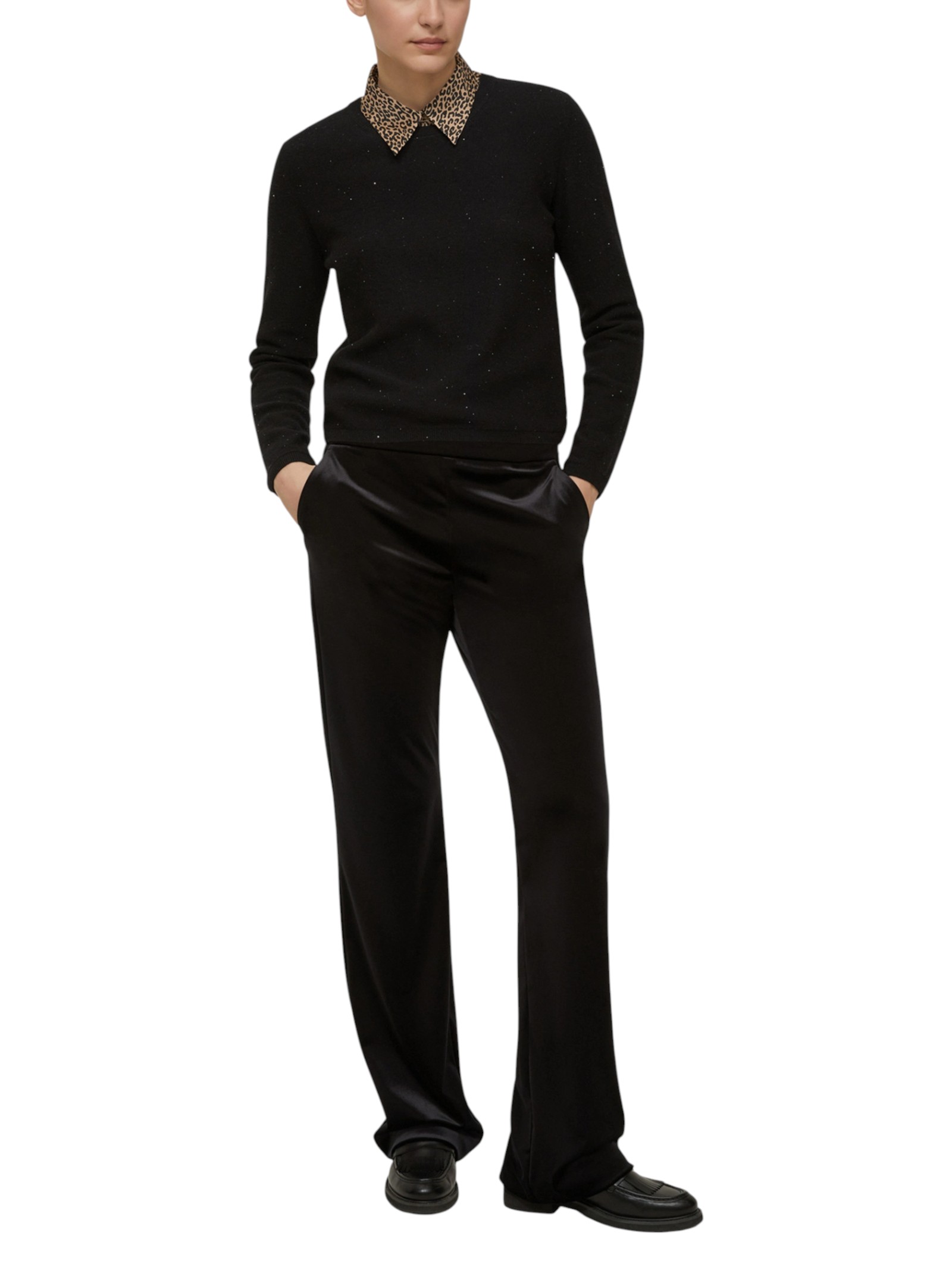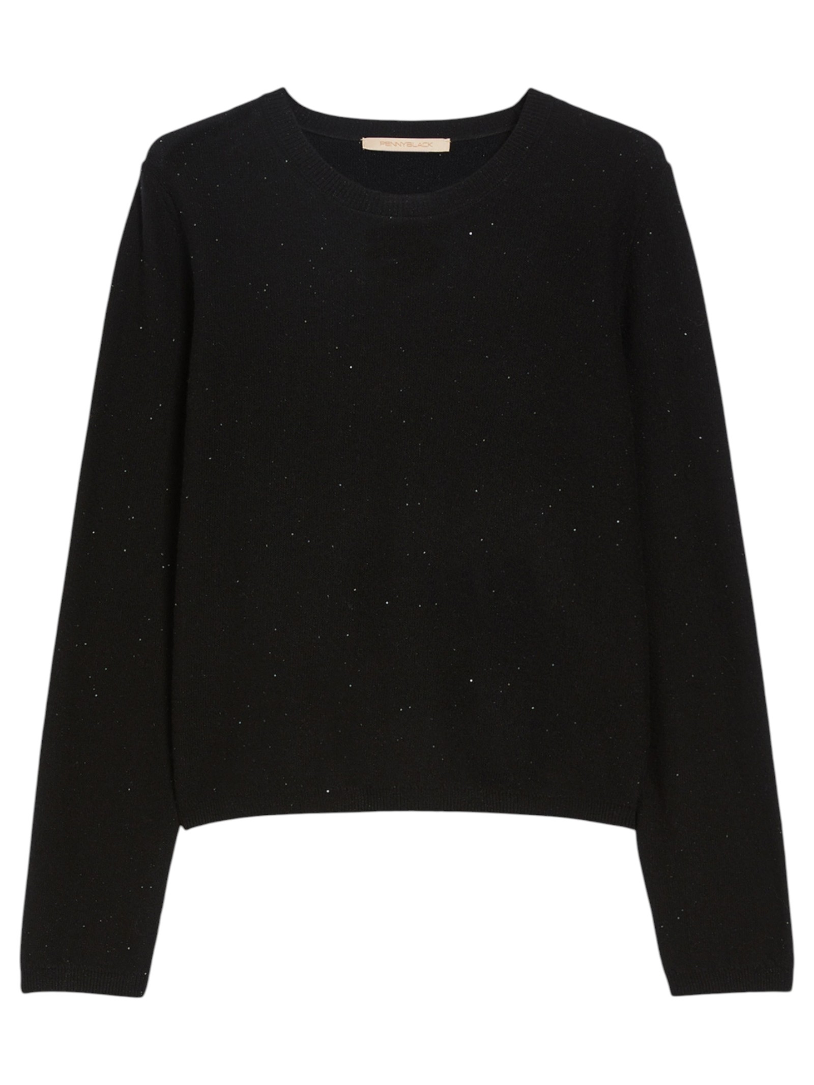Très chic, la maglia in lana sottile è lavorata al rovescio per valorizzare la texture del tricot e arricchita da un filo laminato con micro paillettes per accendere ogni outfit.