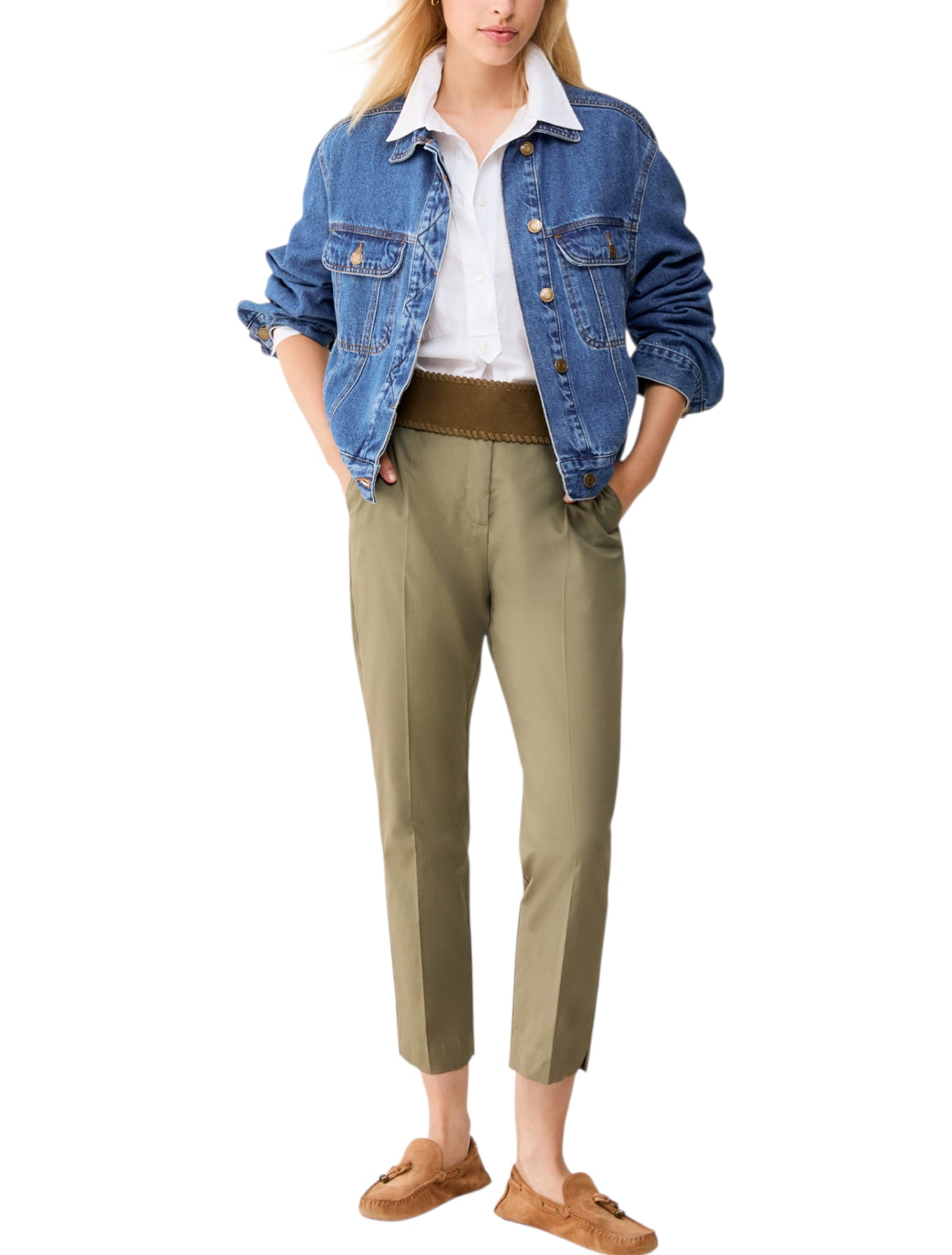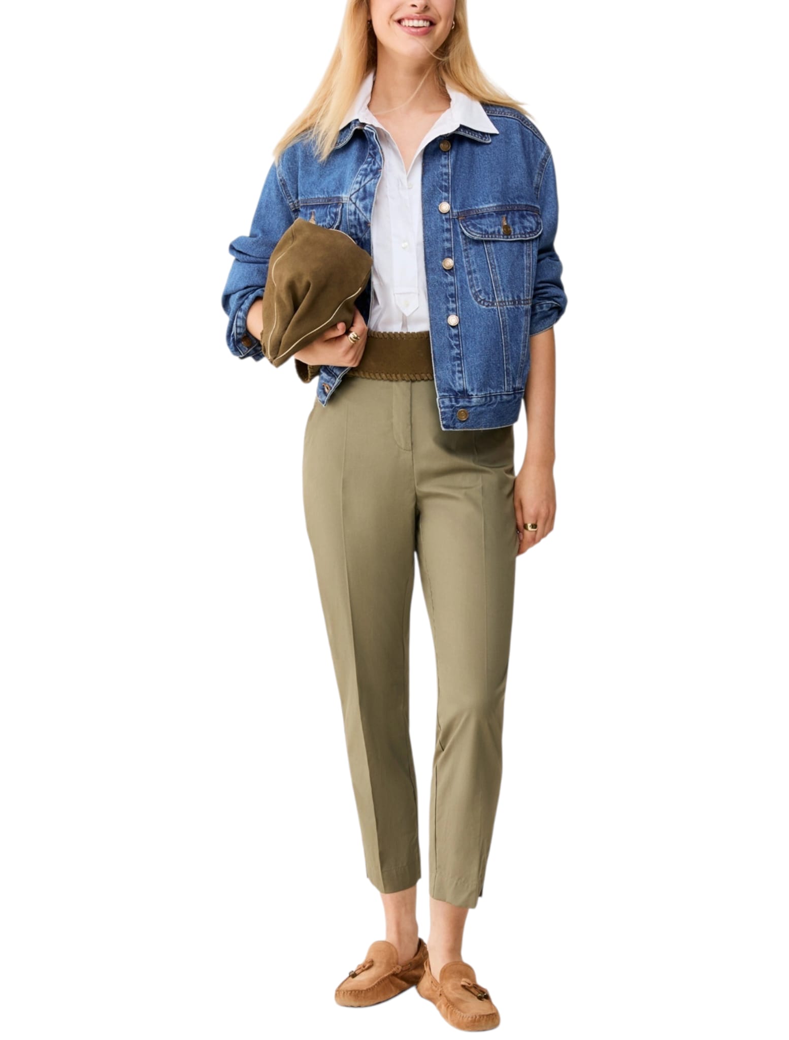 Per freschissimi look estivi, questi pantaloni in popeline sfiorano la silhouette con un taglio impeccabile: carattere vivace a fantasia ramages o passe-partout in tinta unita.