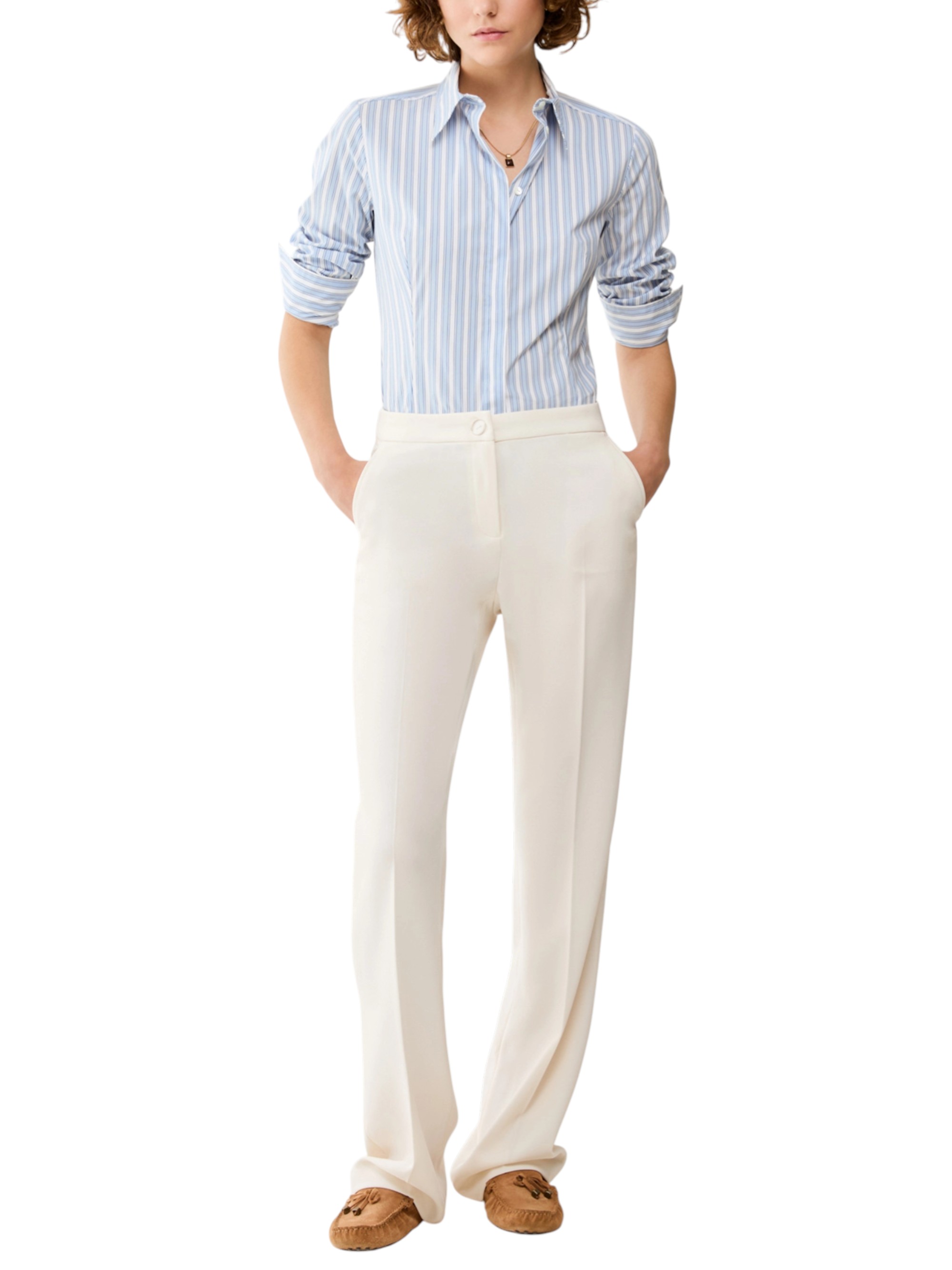 Con un elegante taglio diritto dalle linee fluide, questi pantaloni in cady saranno perfetti come parte di un completo, ma anche solo con T-shirt e sneakers.
