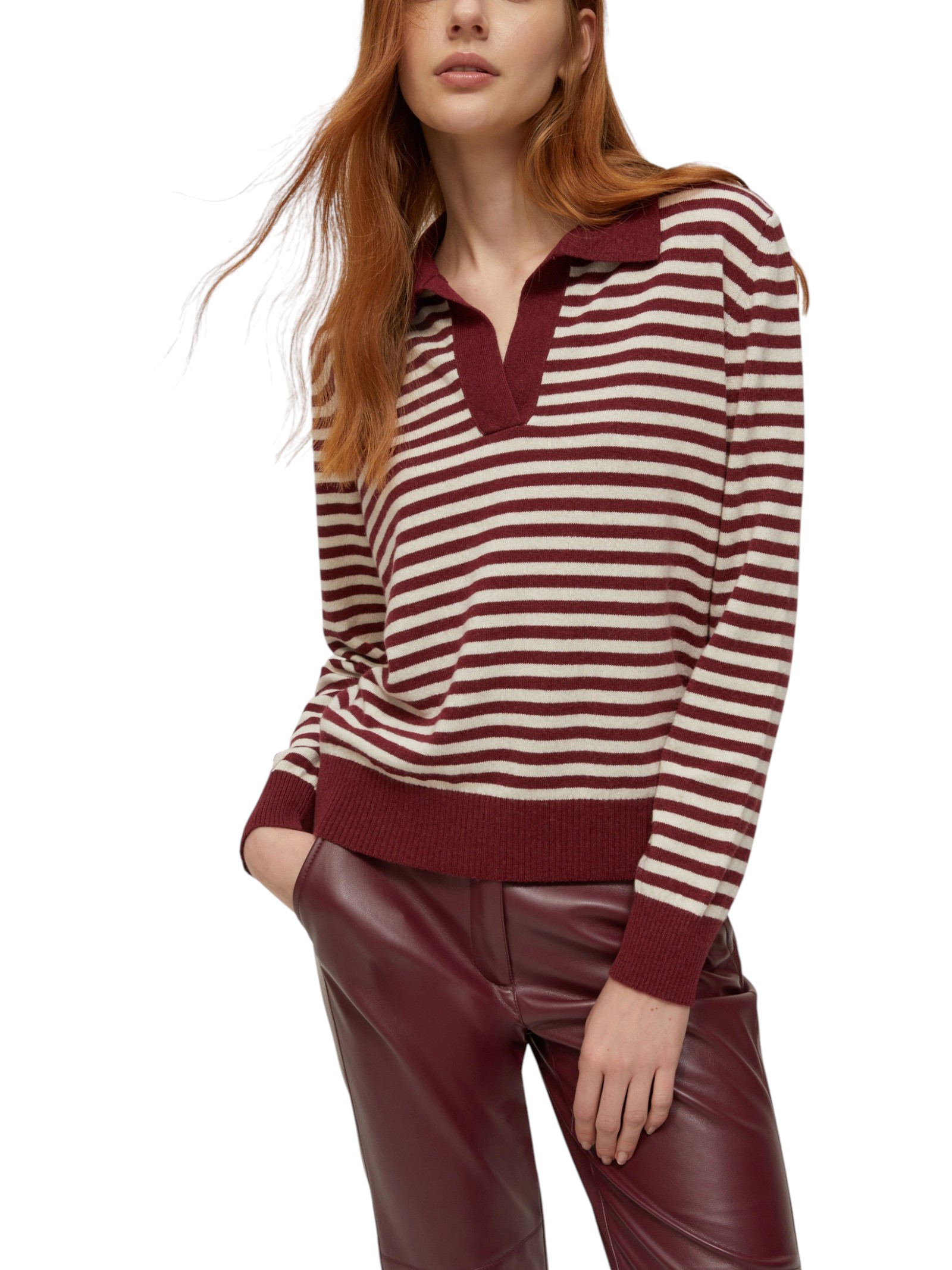 Moderna rilettura di un classico dello stile preppy, la polo in maglia a righe sarà perfetta sotto al blazer, sui jeans e in infiniti mix & match quotidiani, per dare il giusto ritmo al look.