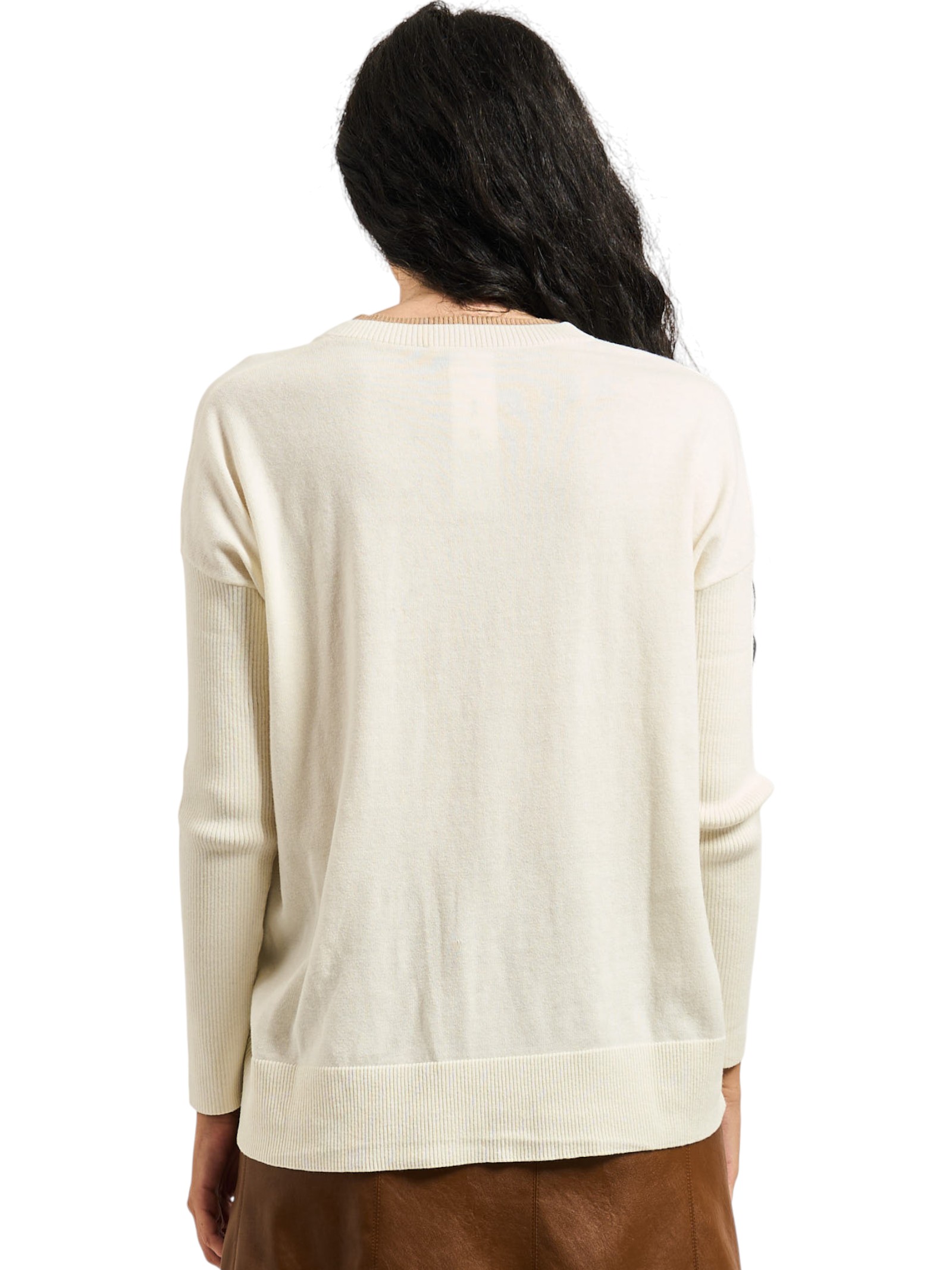Filato in maglia 90% cotone, 10% cashmere; bordi 78% cotone, 12% poliammide, 9% cashmere, 1% elastan.