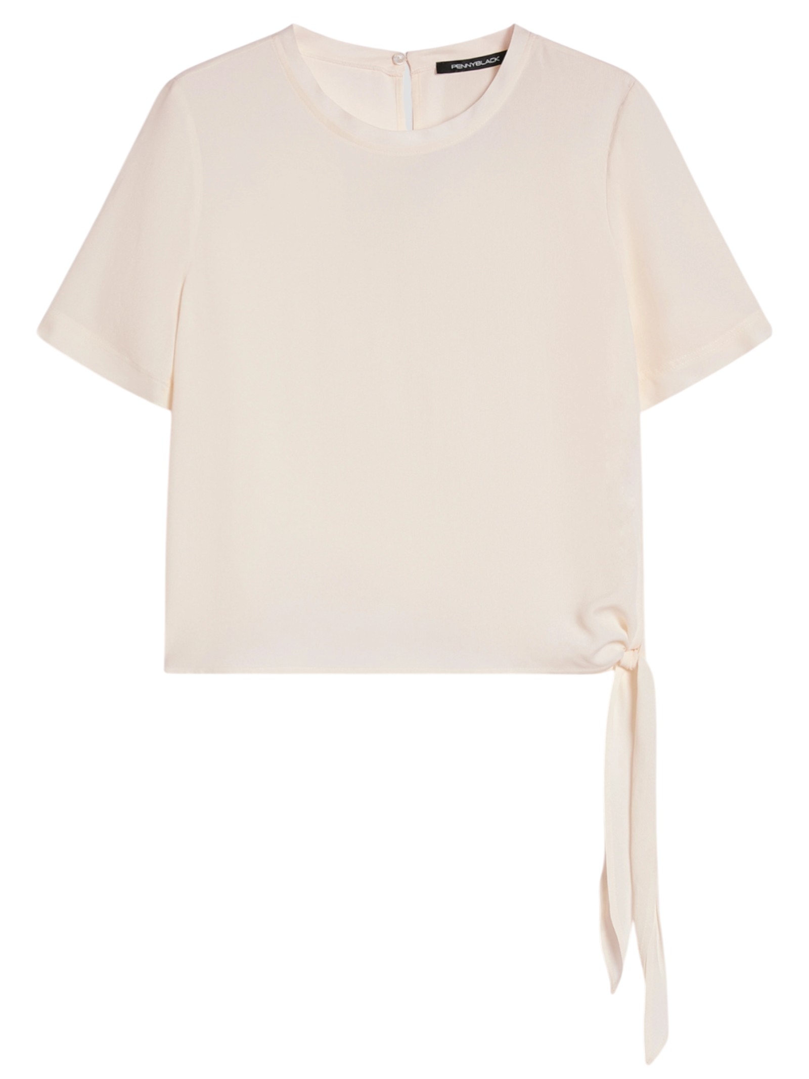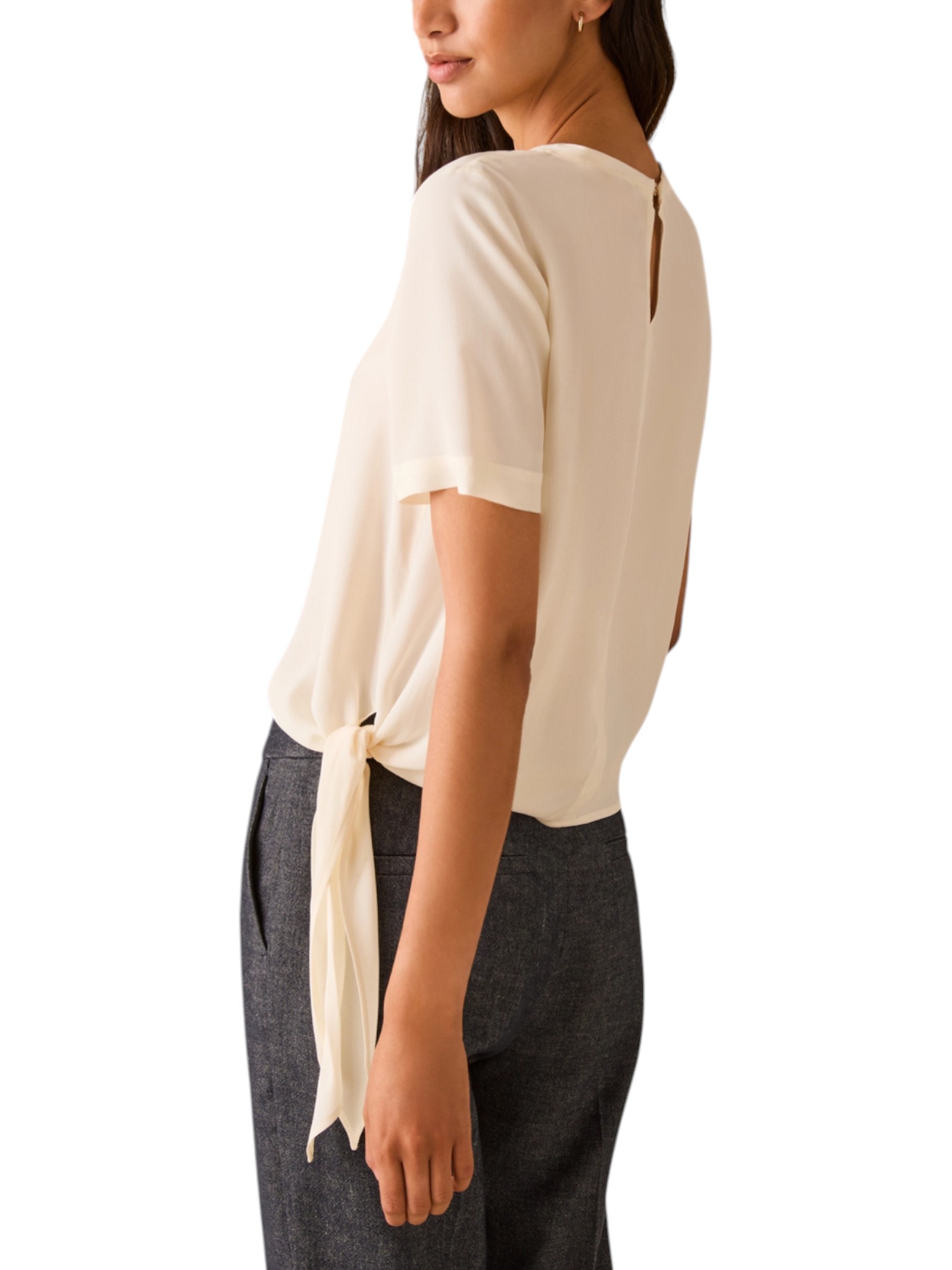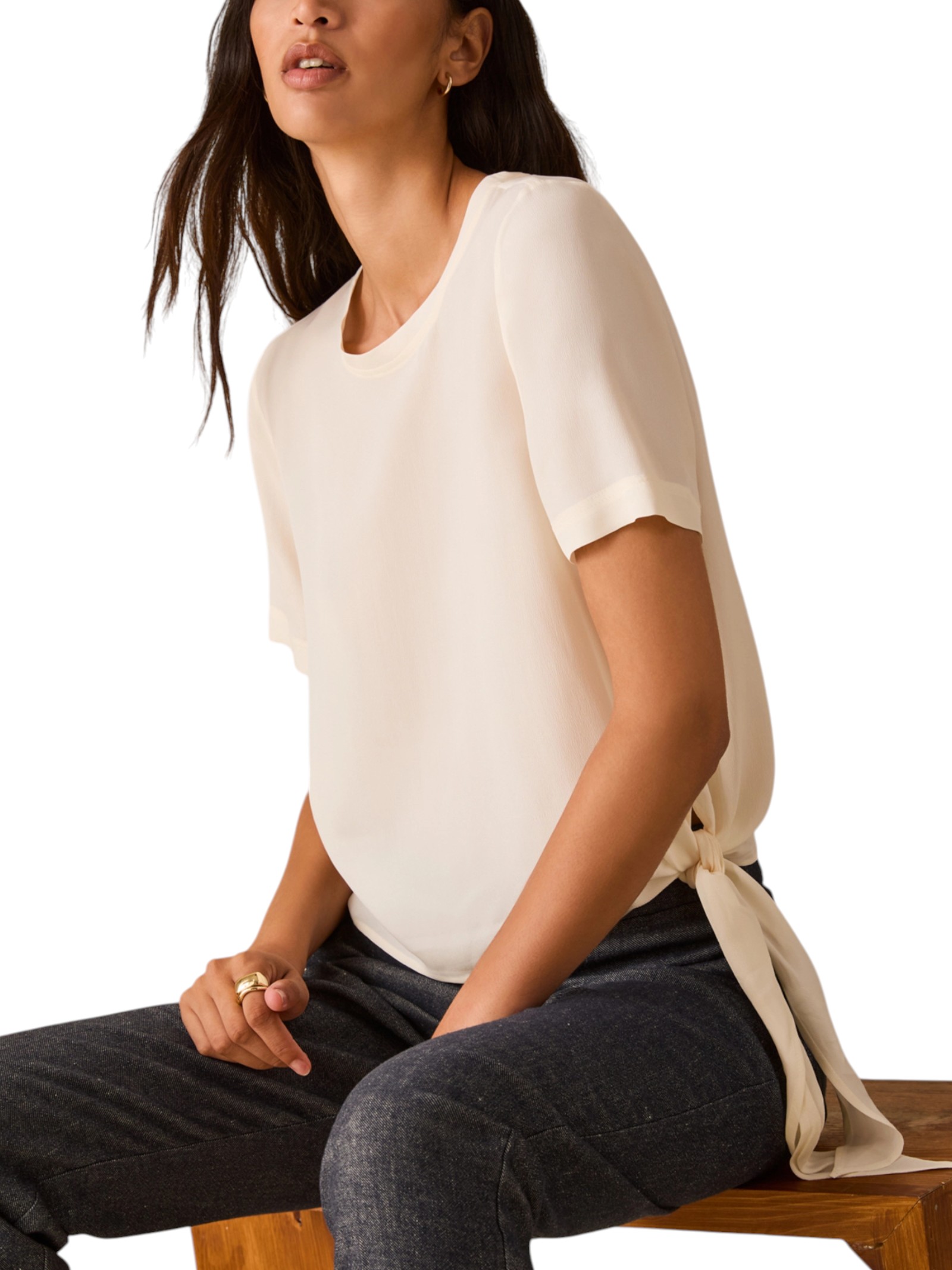 Perfetta tanto sui jeans quanto sui pantaloni classici, questa blusa in crêpe de Chine ha il design pulito di una T-shirt e il tocco in più delle fusciacche da annodare al fianco.