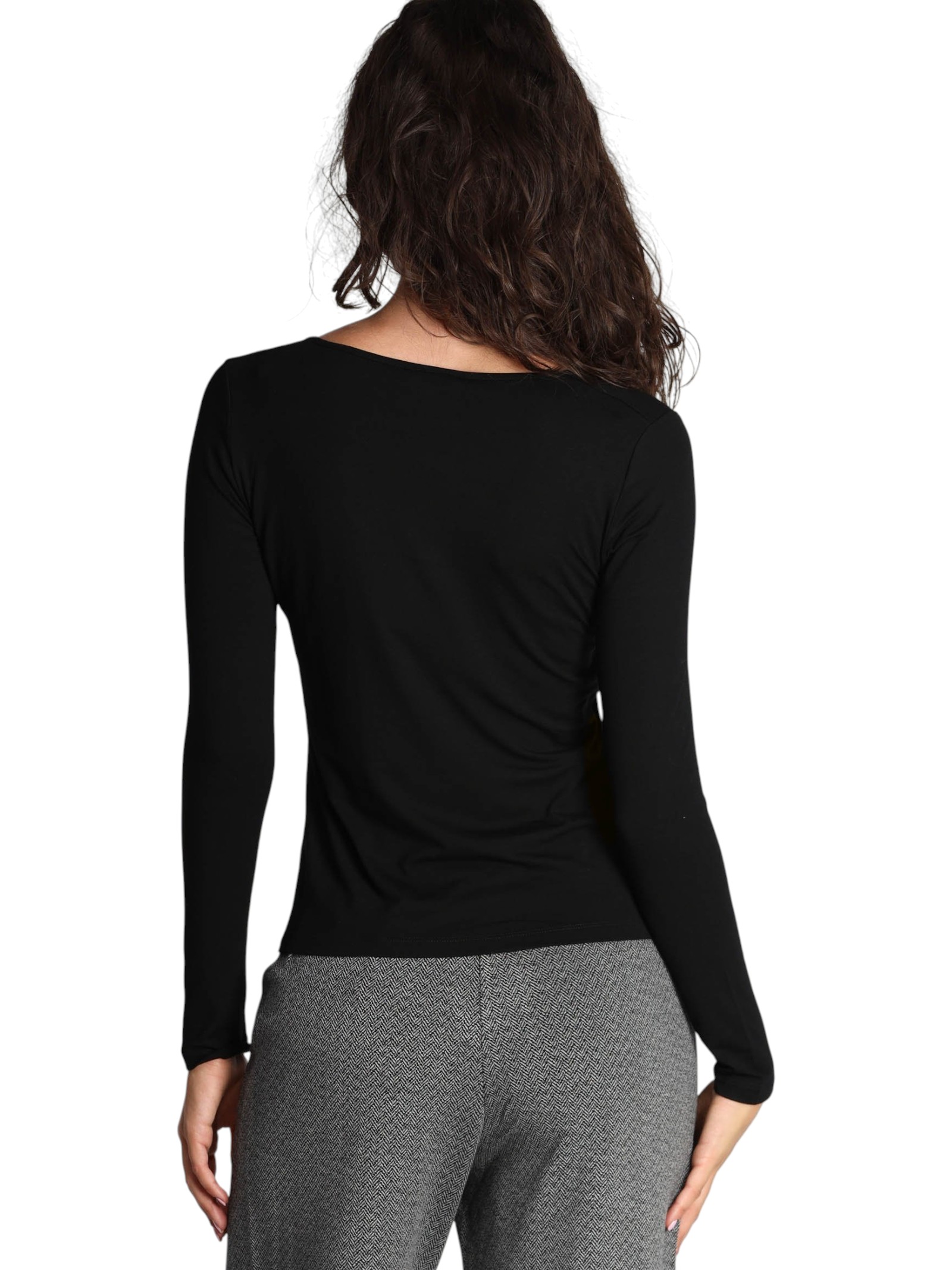 T shirt in jersey di viscosa stretch, scollo tondo, maniche lunghe, linea semiaderente.