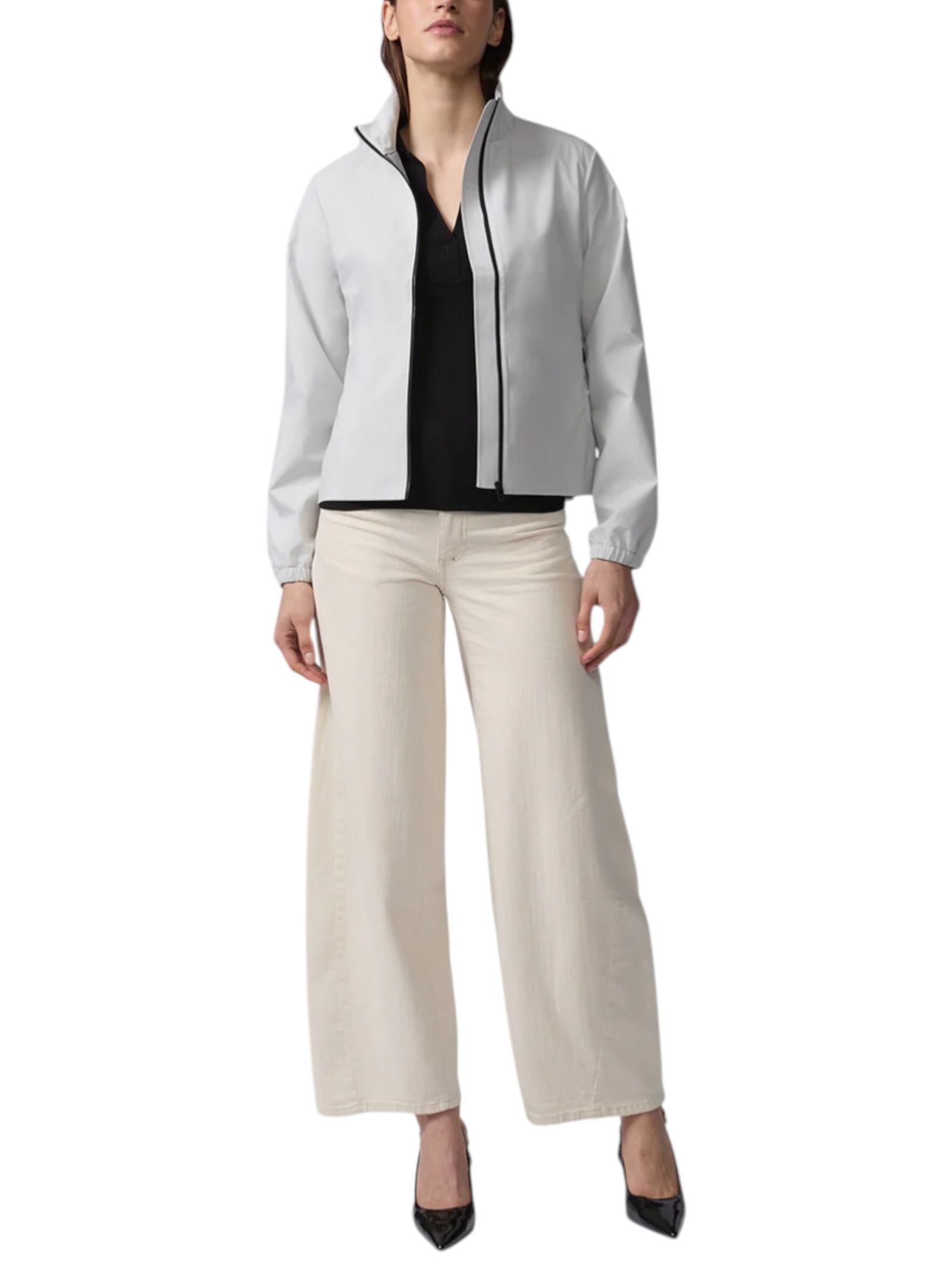 Giacca estiva da donna in soft-shell tecnico dal design minimale e contemporaneo. Tessuto elasticizzato, leggero e traspirante con trattamento idrorepellente, ideale per affrontare la stagione calda con comfort e funzionalità. Linea pulita e dettagli tecnici per un look moderno e versatile.