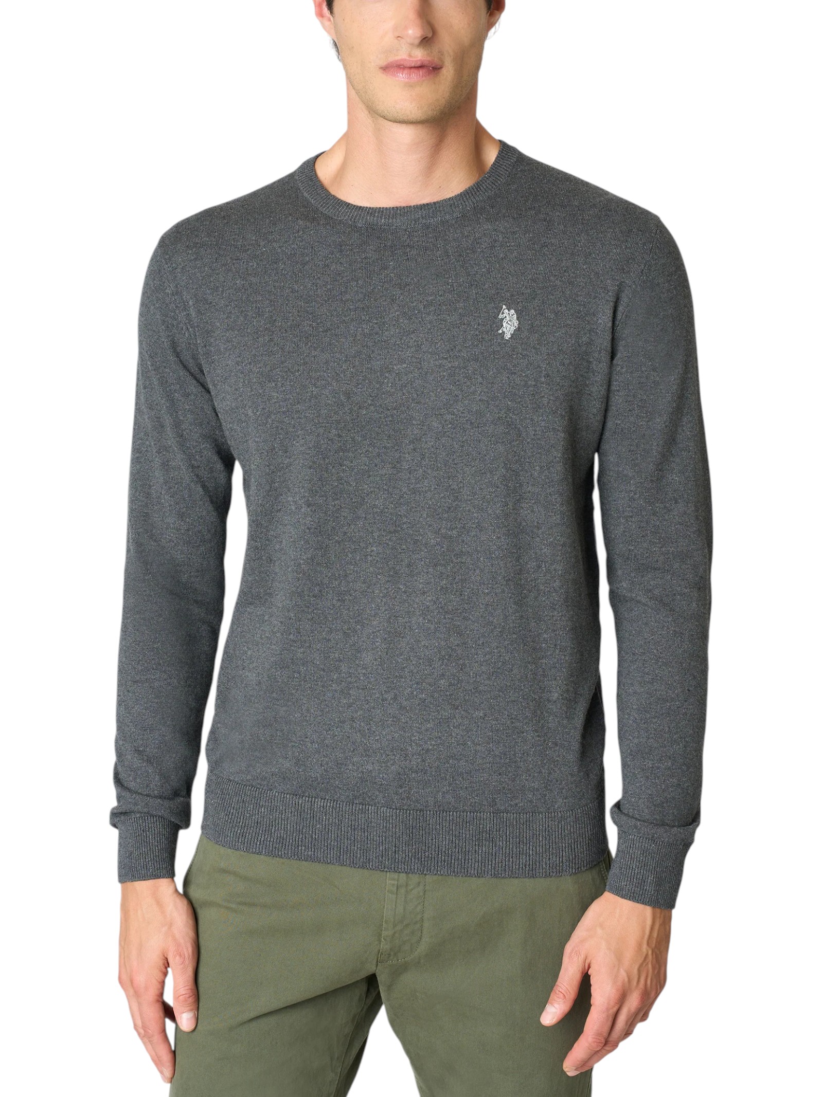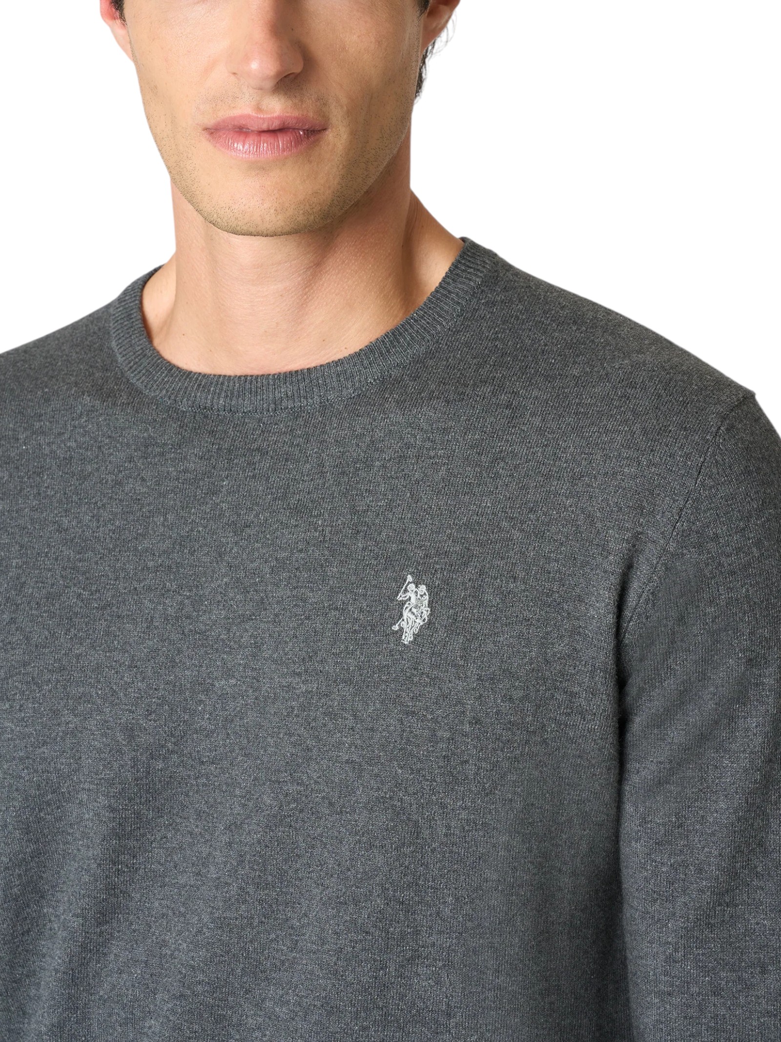 Maglia girocollo da uomo in soffice tessuto cotone e cashmere. Si caratterizz per la vestibilità classica, girocollo raglan e polsini e fondo a costina che consentono una maggiore adattabilità. La bandierina nei tre colori istituzionali sul retro arricchiscino il capo. Il ricamo a filo del logo Double Horsemen lato cuore dona un tocco di eleganza al capo e riflette il legame del brand con lo sport del polo. Un'eleganza senza tempo per un look versatile.