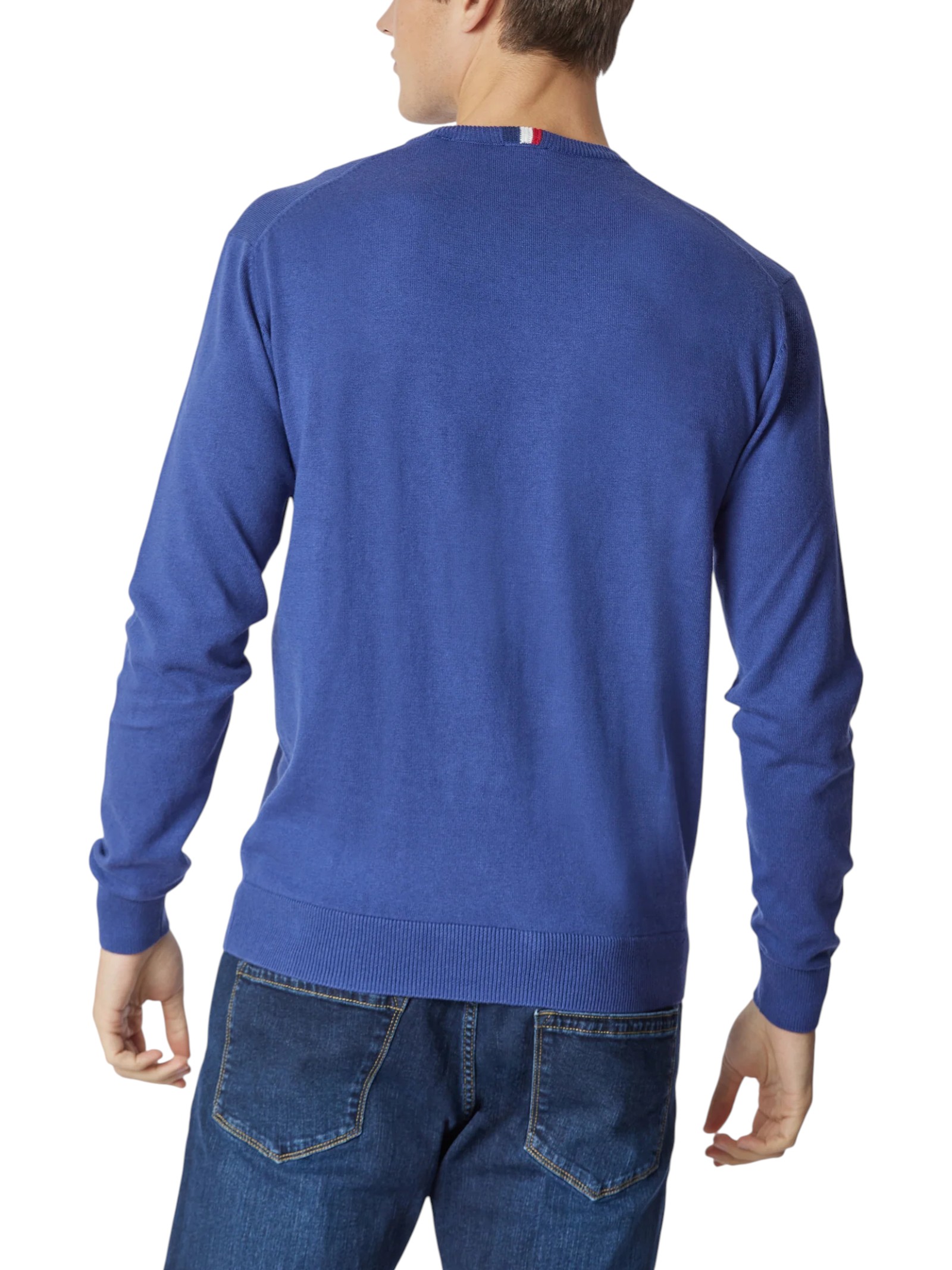 Maglia girocollo da uomo in soffice tessuto cotone e cashmere. Si caratterizz per la vestibilità classica, girocollo raglan e polsini e fondo a costina che consentono una maggiore adattabilità. La bandierina nei tre colori istituzionali sul retro arricchiscino il capo. Il ricamo a filo del logo Double Horsemen lato cuore dona un tocco di eleganza al capo e riflette il legame del brand con lo sport del polo. Un'eleganza senza tempo per un look versatile.