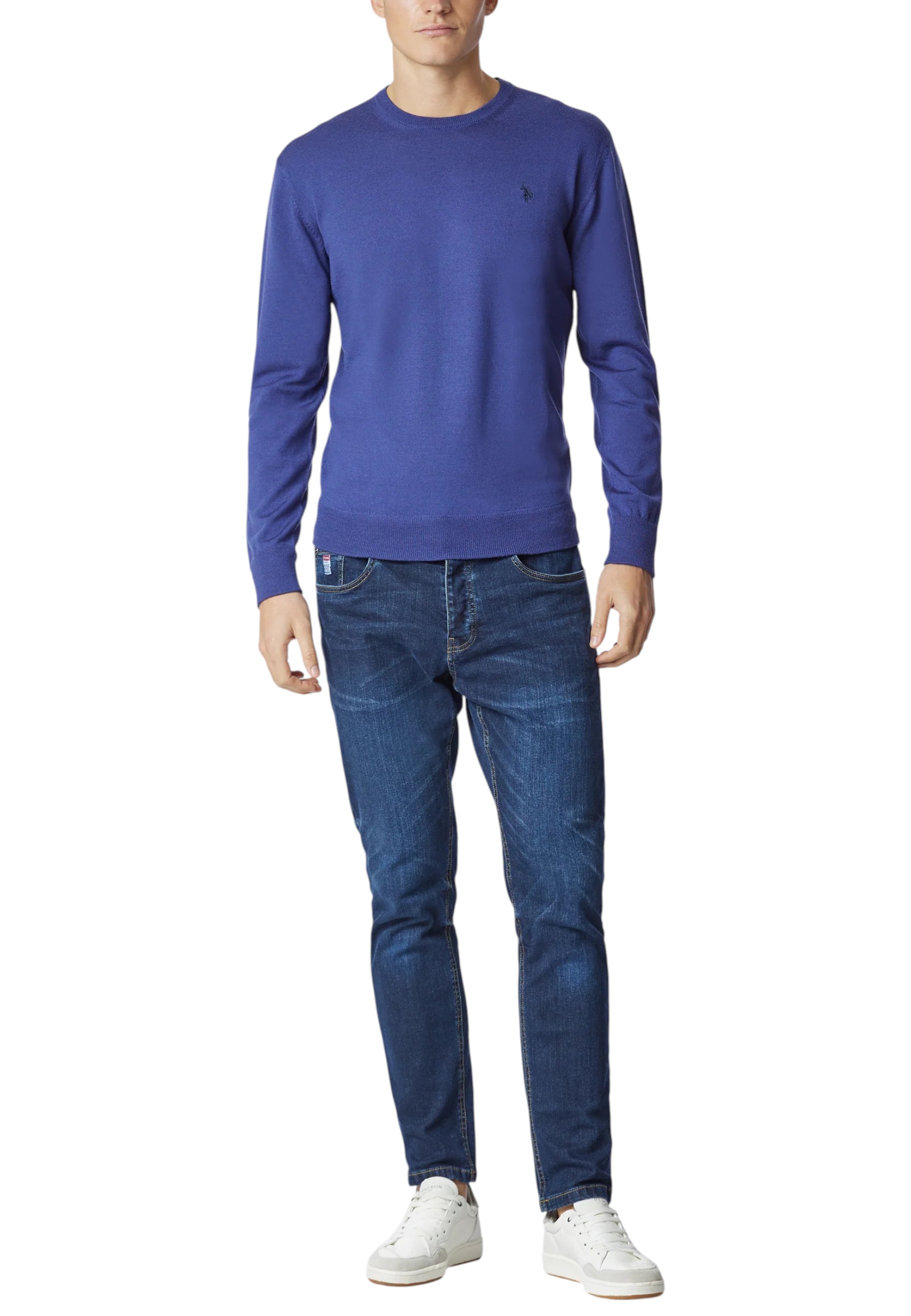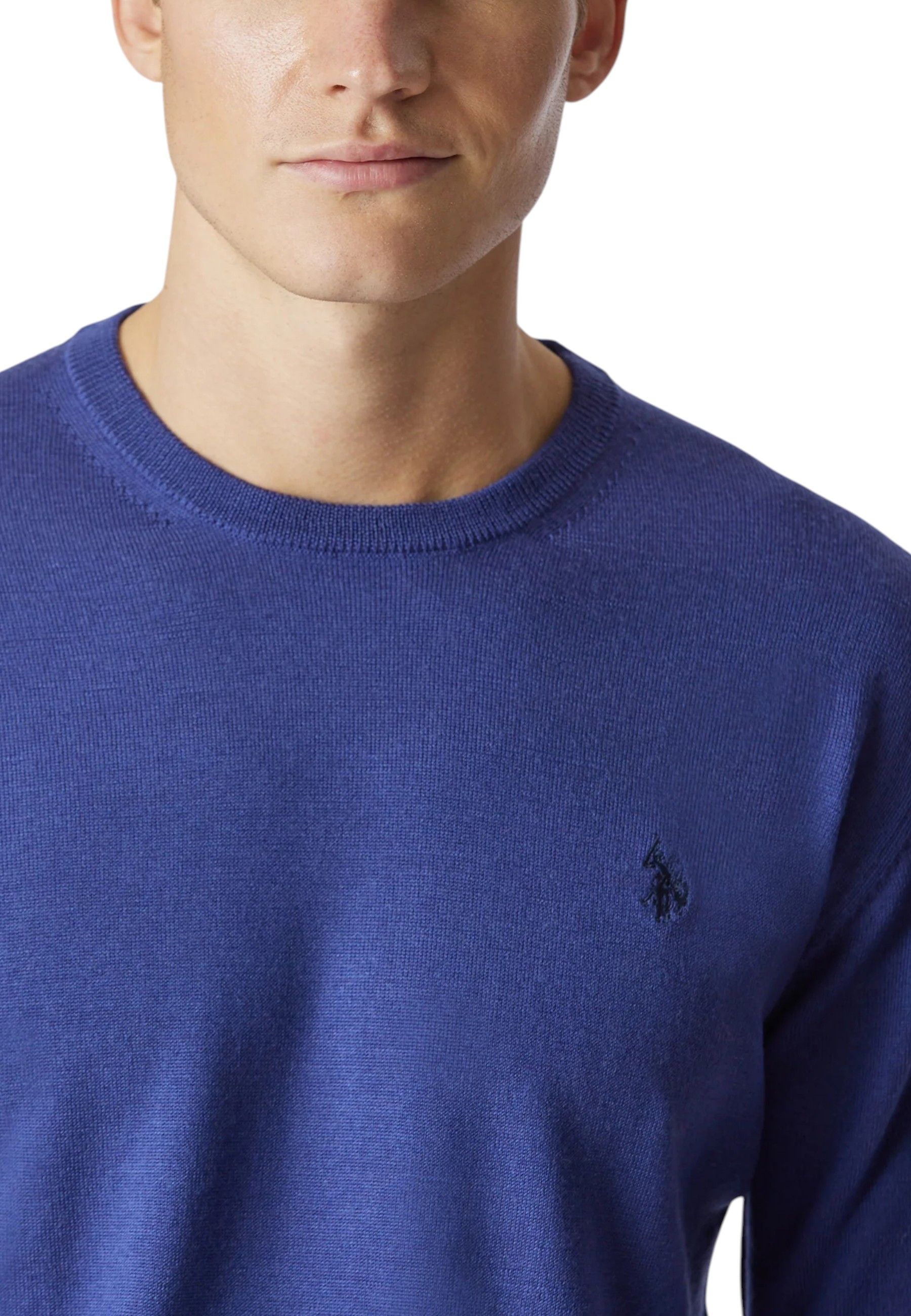 Maglia girocollo da uomo in soffice lana merino. Si caratterizza per il girocollo raglian. La costina su polsini e fondo consentono maggiore aderenza. Il ricamo del logo Double Horsemen lato cuore dona immediata riconoscibilità al capo e riflette il legame del brand con lo sport del polo.