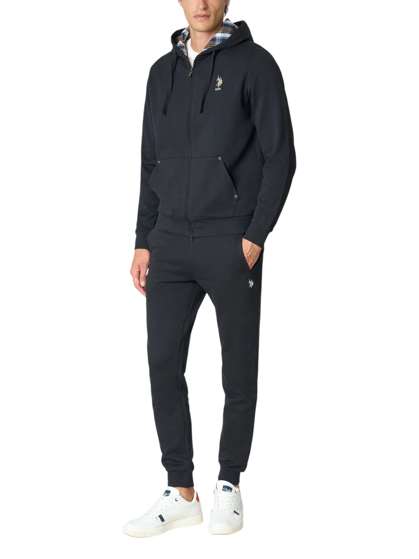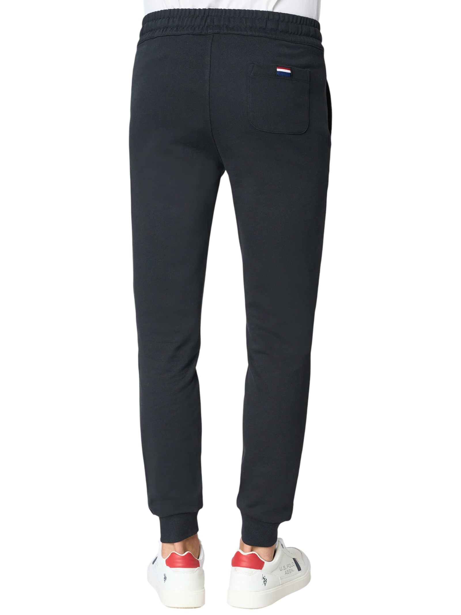 Pantalone sportivo da uomo in caldo cotone diagonal fleece. La vita elasticizzata e coulisse consentono maggiore praticità e adattabilità. La costina su caviglie consente maggiore aderenza. Le tasche laterali e il taschino sul retro, arricchito dalla bandierina nei tre colori istituzionali, donano utilità e praticità. Il ricamo del logo Double Horsemen identifica e riflette il legame del brand con lo sport del polo.