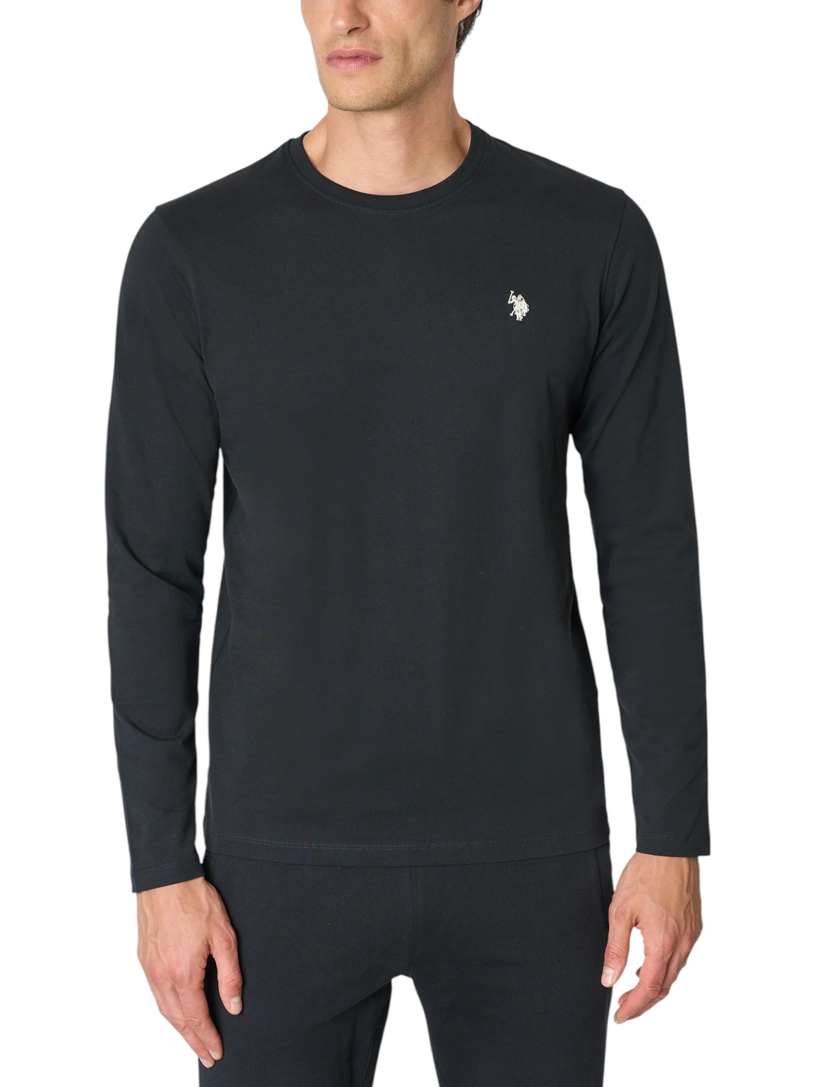 T-shirt girocollo a maniche lunghe da uomo in cotone heavy jersey carbon finish caratterizzata dal ricamo del logo Double Horsemen lato cuore. Un capo classico dalle linee semplici, immancabile nel proprio guardaroba.